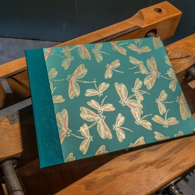 Je vous propose de réaliser ce généreux album photos au format paysage qui se réalise sur une seule séance qui durera environ deux heures. C’est l’un des ateliers que je préconise en premier pour sa simplicité. Pour être honnête, bien qu’il s’agisse d’une technique de reliure à proprement parler, on est ici plus proche du cartonnage. En effet, pas de couture, uniquement de la colle, du carton et du papier.